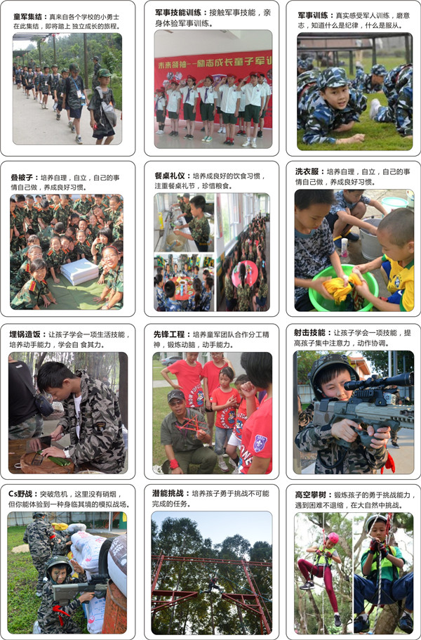 活動形式:童軍特訓(xùn)營以學(xué)生的成長過程為主線,以過去——現(xiàn)在——未來為導(dǎo)線展開培訓(xùn)。通過了解過去的我是一個什么樣的,在過去我形成了一些什么特質(zhì),有哪些優(yōu)點,有哪些需要提升的地方,有哪些限制自己成長的鐵鏈,接納自己的過去,有利于自己的全面成長。然后現(xiàn)在讓孩子成為一個個性鮮明、充滿自信、敢于負責,具有思想力、領(lǐng)導(dǎo)力、創(chuàng)造力的現(xiàn)代學(xué)生,提升孩子的交際溝通能力,為自己將來設(shè)定切實可行的目標及方向。